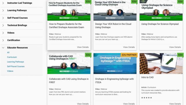 Educators also have access to a collection of resources to help you teach CAD basics in your classroom. There are classes and videos along with a curriculum. Students can also use the videos to support their design process.