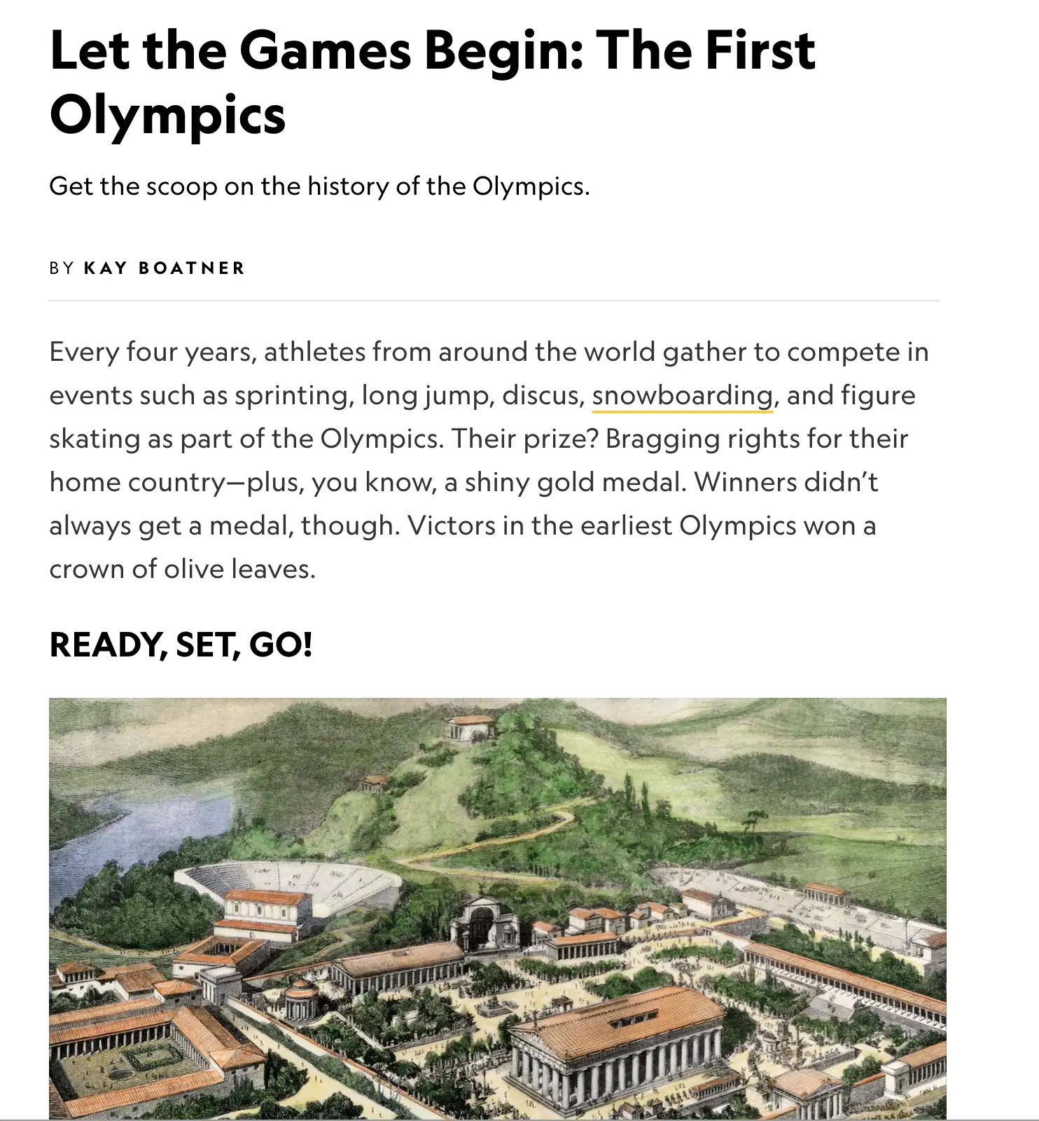 [00:04:50] Shanna Martin: Information. Olympic National Park, which is great ’cause we just did national parks in my class. Oh yeah. But they go through the first Olympics, the history of the Olympics. They have fun things like animal athletes, and just different pieces of information you can find about the Olympics, if that’s something that you are gonna talk about with your students across the top of the screen.