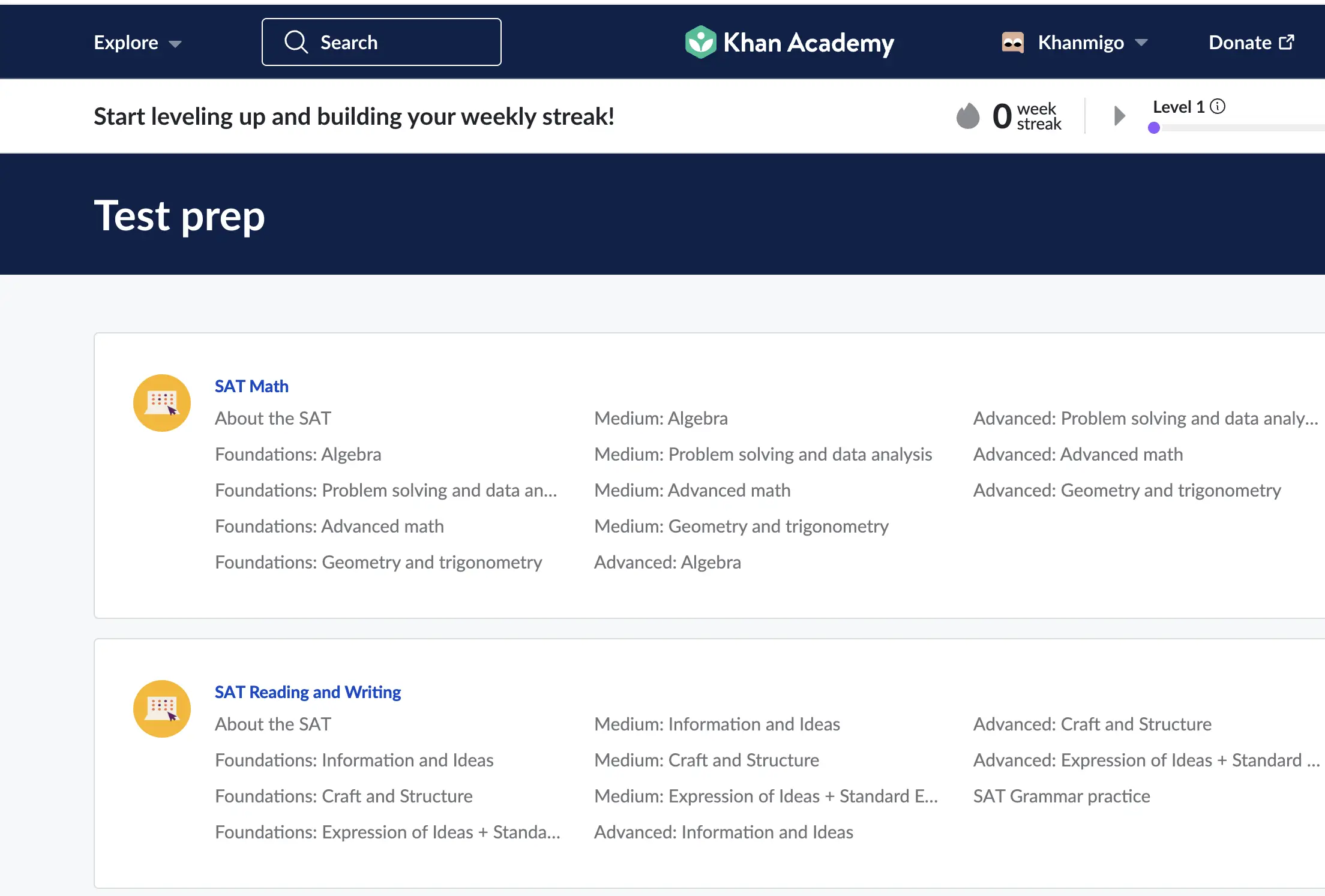 [00:03:25] Shanna Martin: But if you go to K-K-H-A-N-A-C-A-D-E-M y.org, khan academy.org/test to ST dash Prep, BREP, it will give you all kinds of test prep support. So there’s like SAT math. And it breaks it down by categories like foundations of algebra, problem solving, advanced math, geometry, medium level stuff, advanced level things, which I appreciate it breaks it down by level.